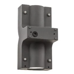 L’applique d’extérieur AGRAP offre un design simple mais passionnant. Les deux lampes orientées dans deux directions opposées assurent un éclairage direct de l’espace situé en-dessous de la lampe. Par ailleurs, la lumière dirigée vers le haut illumine élégamment le mur au-dessus. La conception du boîtier se montre tout aussi chic.