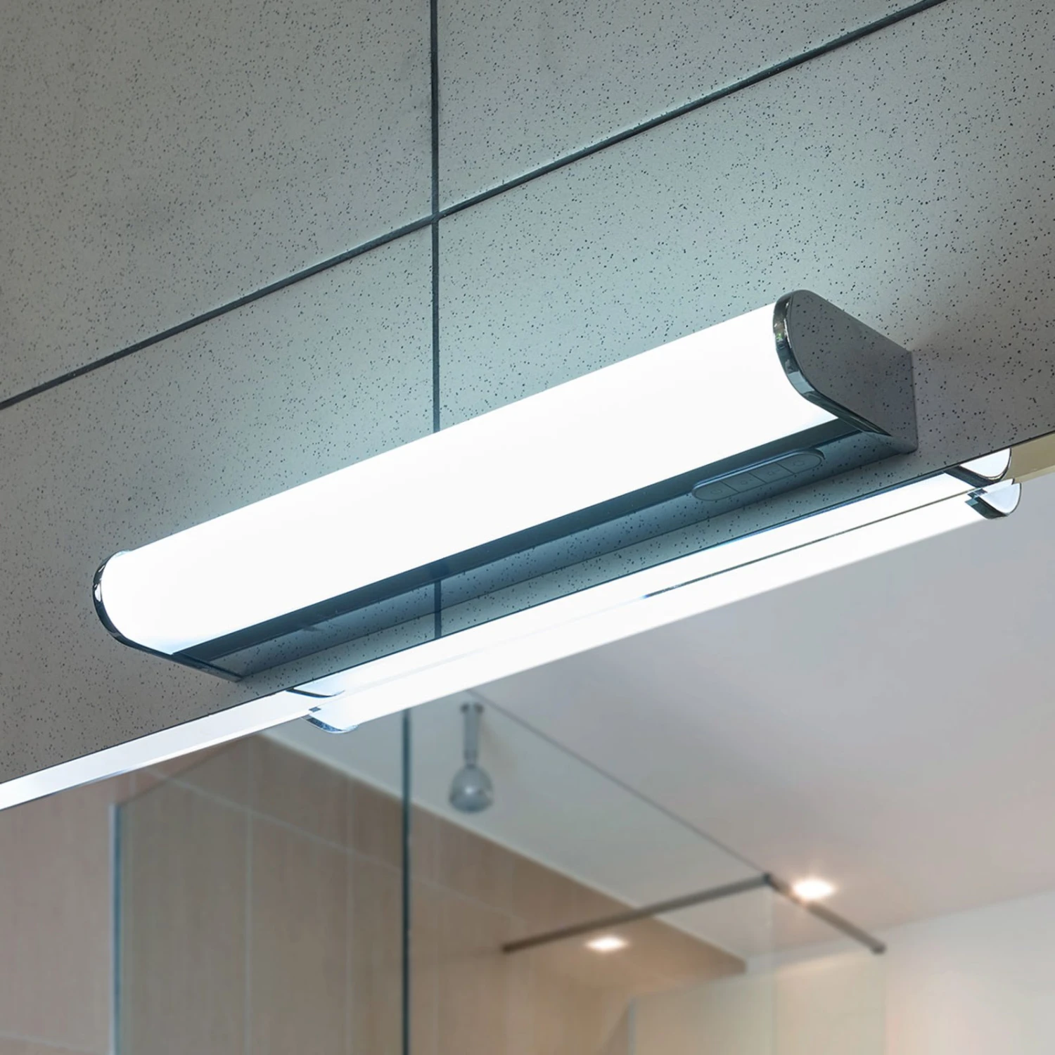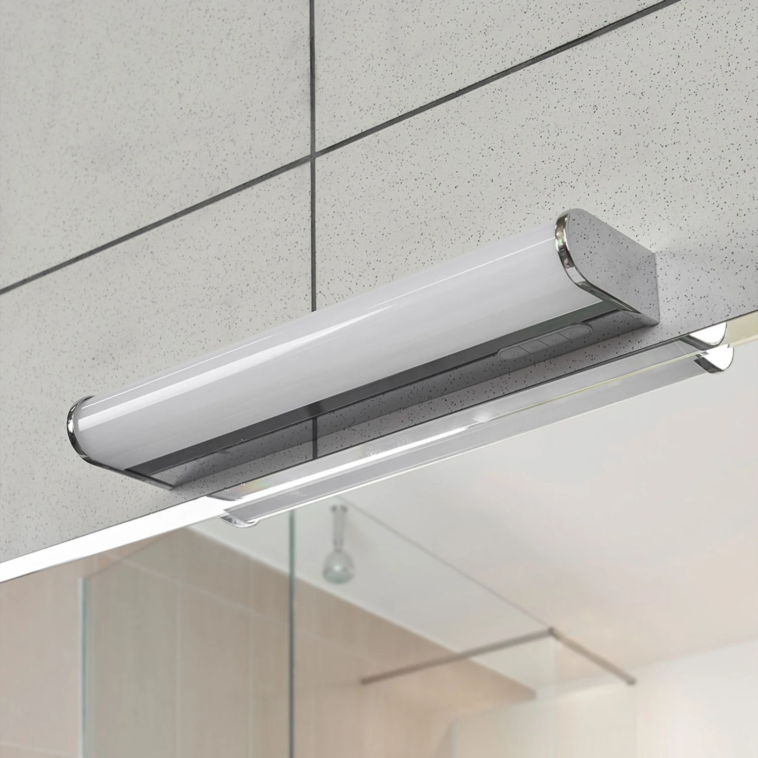 Applique pour salle de bains LED sobre Jesko avec support chromé, variateur d’intensité et adaptation des couleurs de la lumière