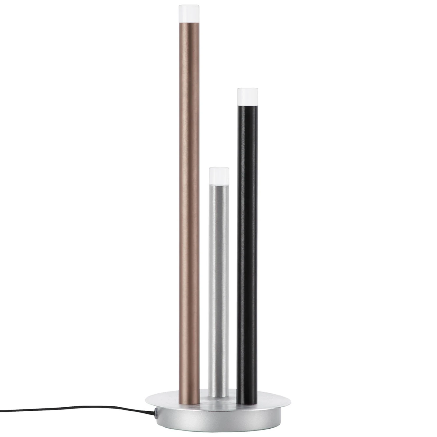 La lampe à poser LED Cembalo séduit dès le premier regard par ses formes géométriques et ses couleurs. Composée de trois colonnes de différentes hauteurs chacune surmontée d’une lumière LED, cette lampe de table attire tous les regards. La finition en aluminium, brun et café affiche un aspect harmonieux et crée une ambiance lumineuse agréable et chaleureuse.