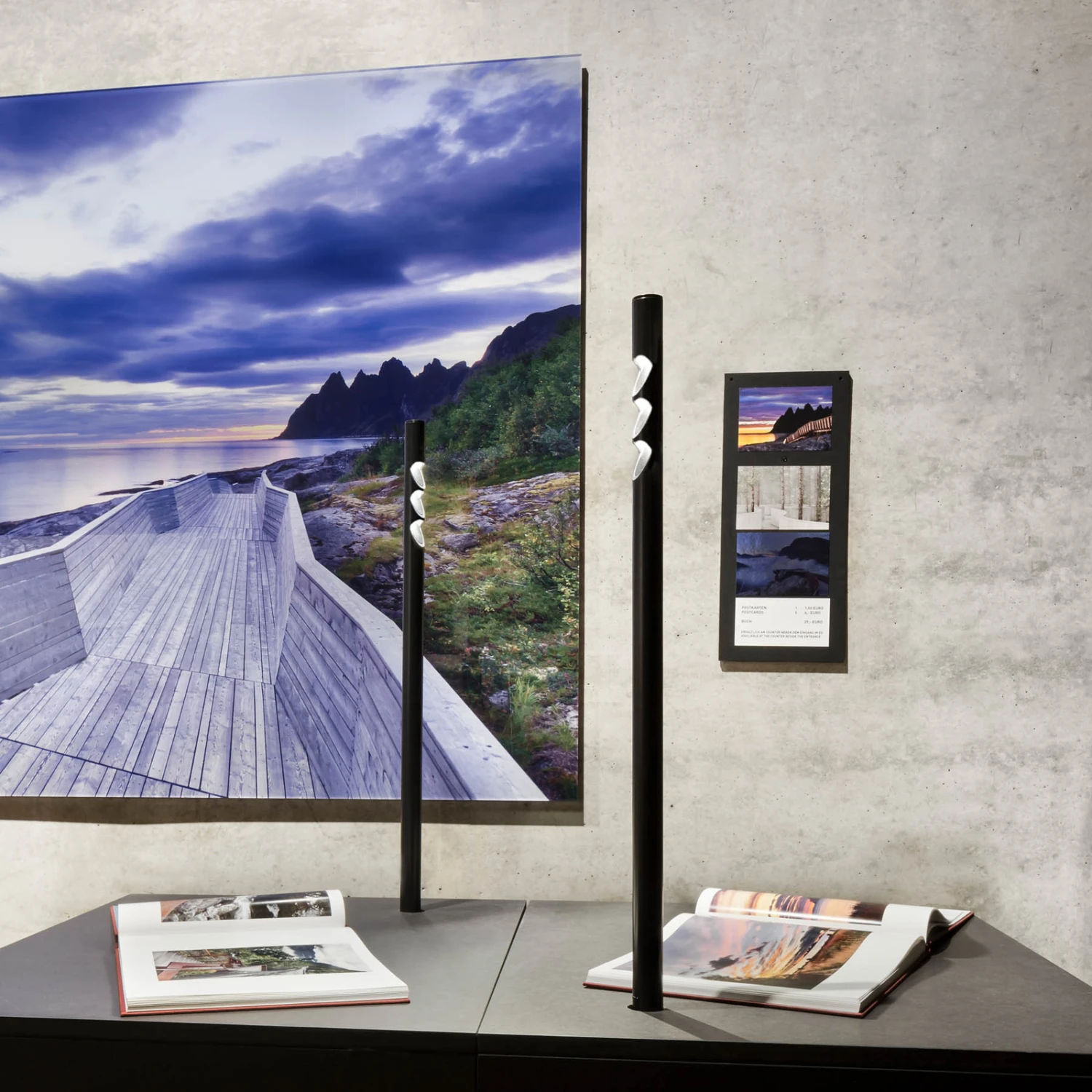 Un profilé en aluminium thermolaqué de forme tubulaire constitue le corps de la lampe de bureau LED Lucy. Les LED sont intégrées dans la partie supérieure et leur lumière est diffusée en biais vers le bas à travers trois ouvertures orientées vers un côté et éclaire le plan de travail. Selon les besoins, une rotation de 180° est possible. Un bouton-poussoir avec fonction de variation se trouve directement sur le luminaire. Pour la fixation, une ouverture de Ø 3,5 cm est nécessaire dans le plateau de table ; l’extrémité inférieure du profilé en aluminium y est vissée avec le contre-écrou fourni. L’alimentation électrique est assurée par le câble fourni avec le bloc d’alimentation.
