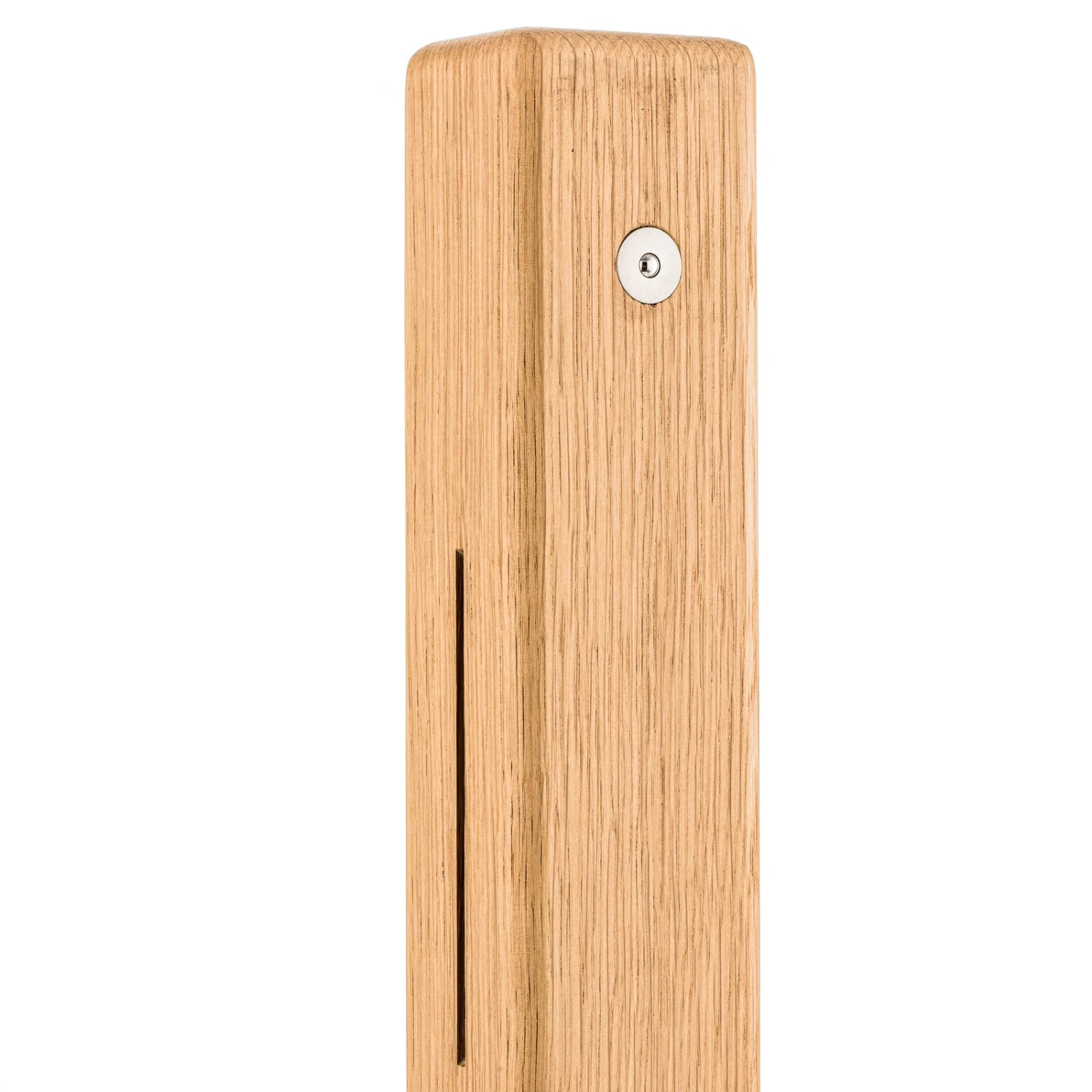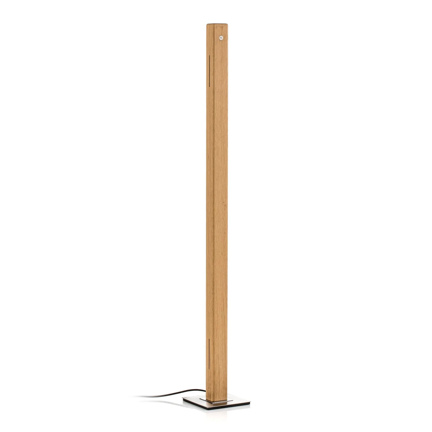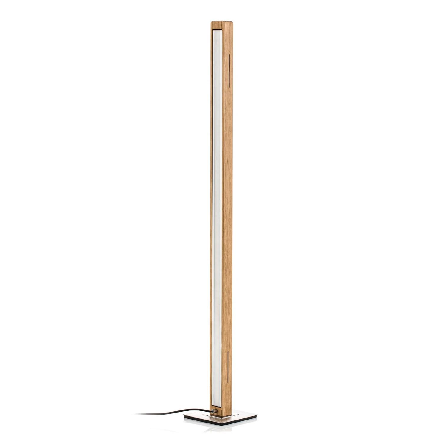 Le lampadaire LED Leonora de haute qualité de la marque HerzBlut s’intègre facilement dans les intérieurs existants grâce à son design discret. Ce diffuseur de lumière moderne se compose d’un long abat-jour en bois massif qui repose sur un pied métallique à la surface nickelée matte brossée. Des LED à faible consommation d’énergie sont alignées sur un côté de la fine colonne. On obtient un éclairage particulièrement confortable en plaçant l’élément lumineux en direction du mur.