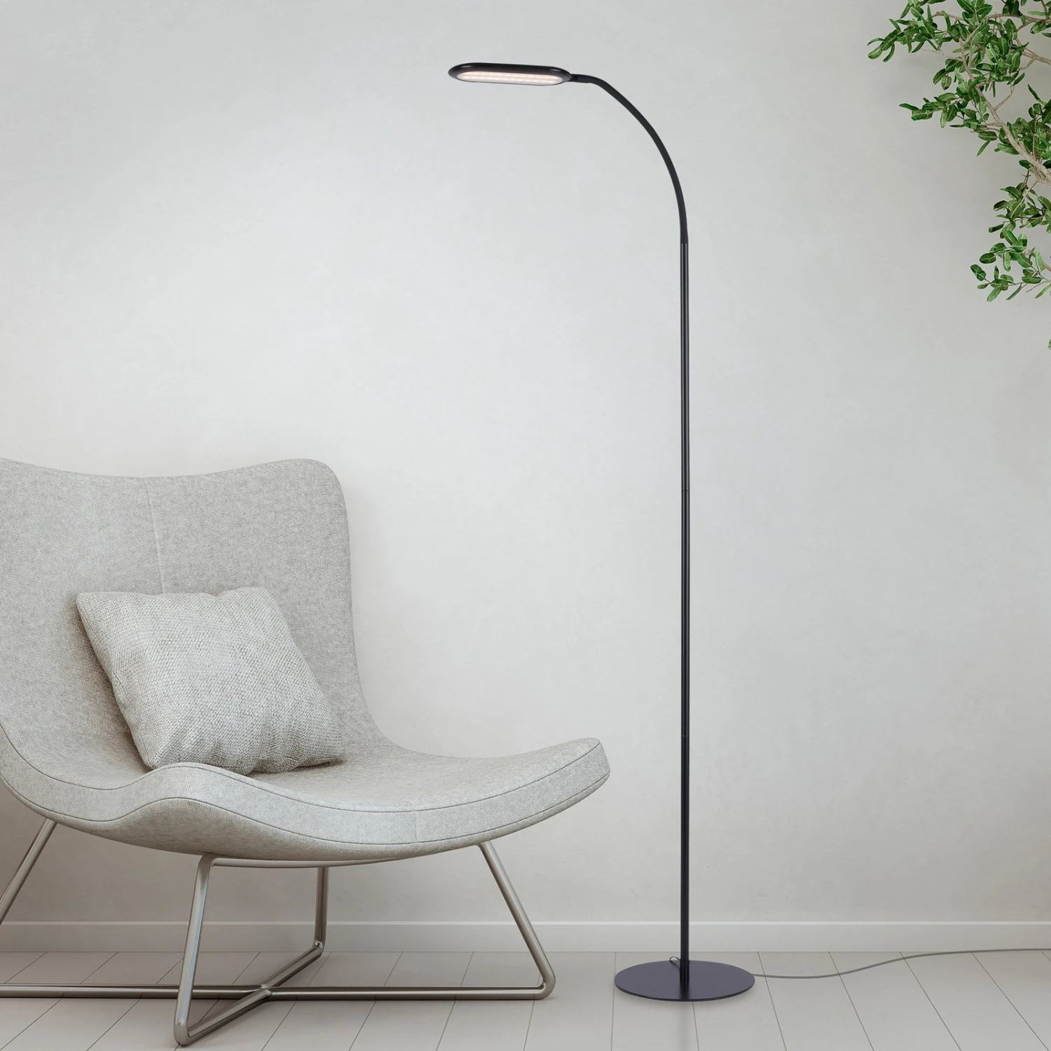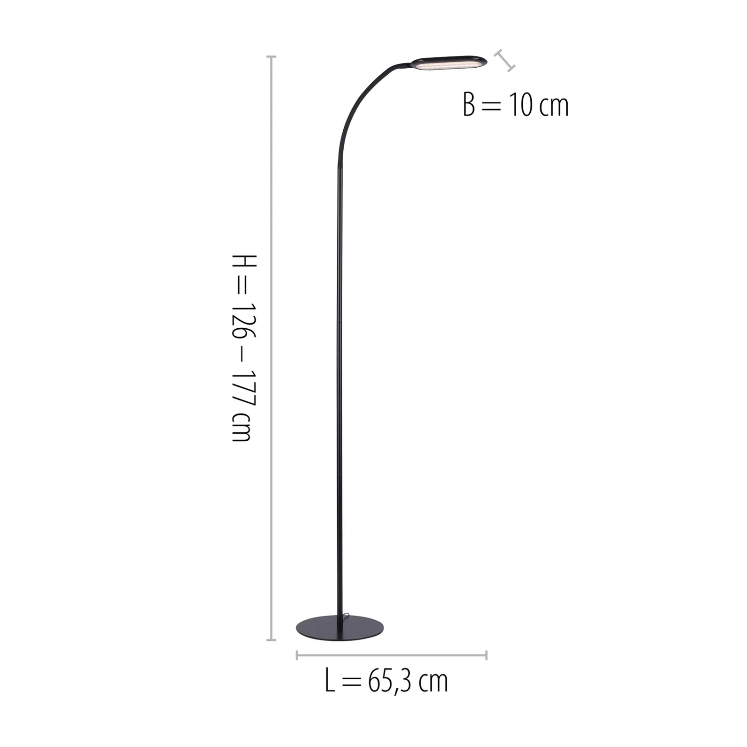 Le lampadaire LED moderne Kelly est Ă©quipĂ© de LED Ă haute efficacitĂ© Ă©nergĂ©tique qui peuvent ĂŞtre facilement commandĂ©es par un variateur tactile. Qu’il s’agisse de faire varier l’intensitĂ© lumineuse ou d’adapter la tempĂ©rature de couleur, la lumière peut ĂŞtre rĂ©glĂ©e en fonction des besoins. Les LED rayonnent directement vers le bas. Grâce Ă la hauteur du lampadaire et Ă son bras flexible, il est parfait pour ĂŞtre utilisĂ© par exemple sur un bureau ou comme lampe de lecture dans le salon.