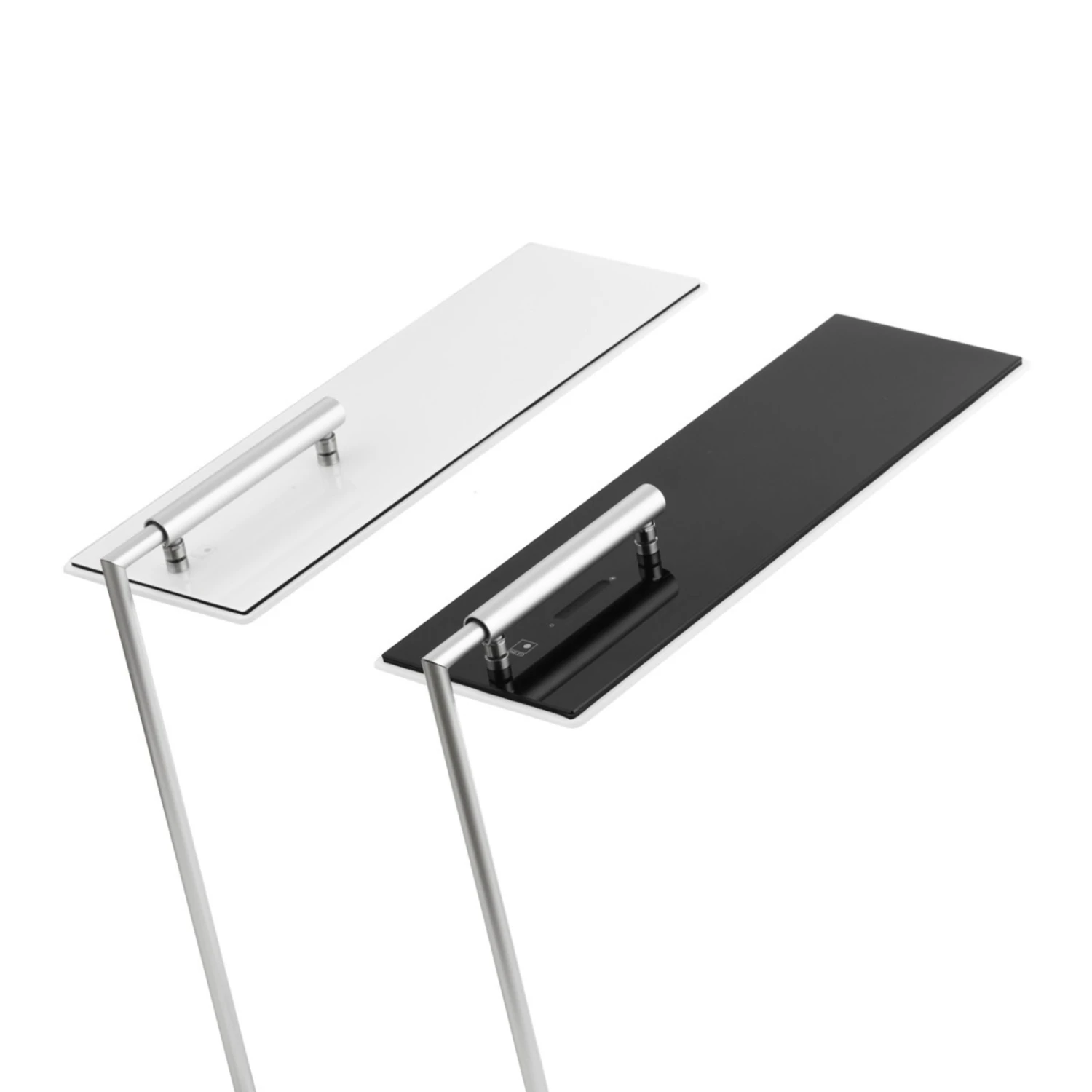 La tĂŞte de lampe ultra-plate fait saillie sur la surface de travail et l’Ă©claire de manière claire et non Ă©blouissante, crĂ©ant ainsi une atmosphère agrĂ©able avec une lumière de travail non Ă©blouissante, claire, sans UV ni IR. Le design minimaliste donne Ă la lampe de bureau une touche très moderne.