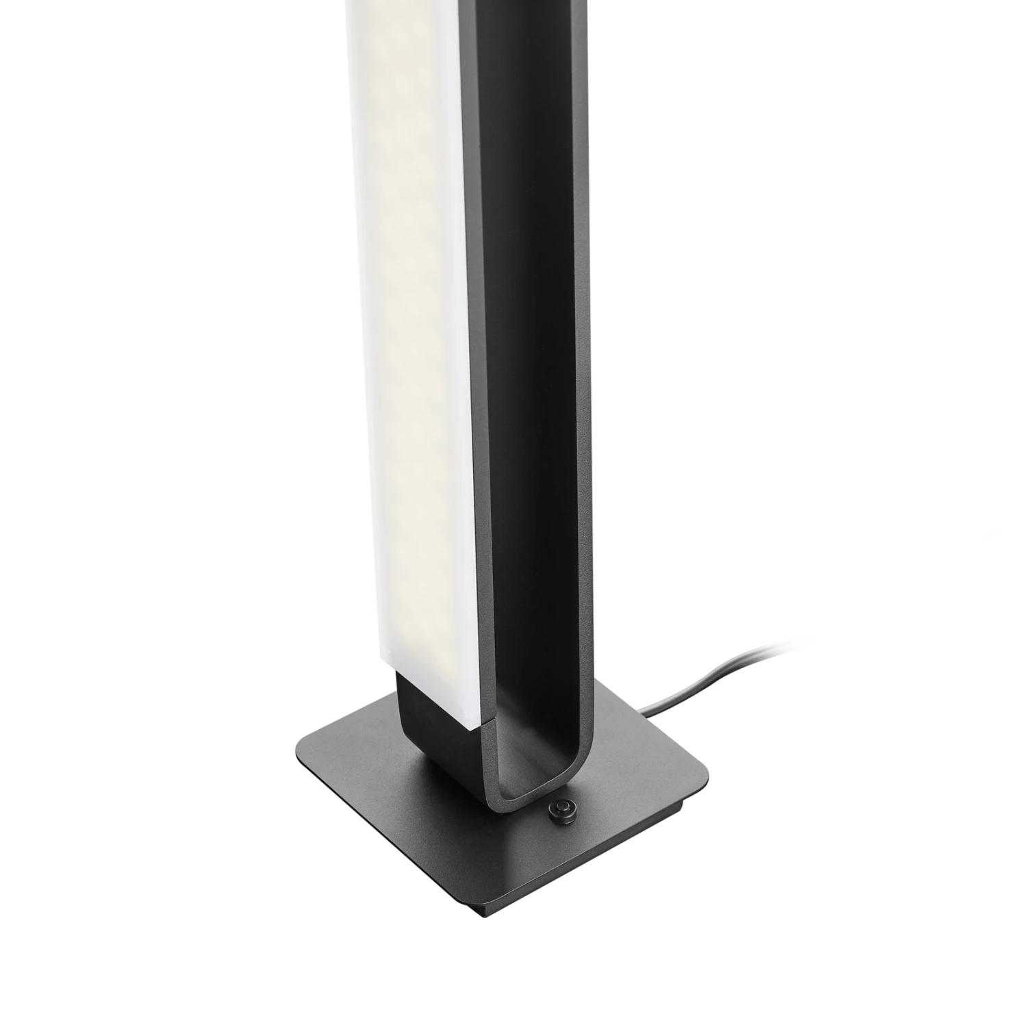 Lampe de table LED Box avec variateur, Ă©lĂ©ment lumineux orientable La lampe de table LED Box se compose d’un pied carrĂ© et d’un cadre Ă©troit en aluminium qui s’en dĂ©tache, dans lequel un Ă©lĂ©ment lumineux orientable sur tous les cĂ´tĂ©s a Ă©tĂ© intĂ©grĂ©. Celui-ci est Ă©quipĂ© d’un cĂ´tĂ© de LED blanc chaud derrière le cache satinĂ© et peut ĂŞtre tournĂ© individuellement dans la position souhaitĂ©e afin d’orienter le rayonnement lumineux dans la position voulue. Le variateur Ă bouton-poussoir intĂ©grĂ© au pied permet de faire varier l’intensitĂ© lumineuse – rendu des couleurs particulièrement bon Ra90 – lumière blanche chaude (2.700 K)