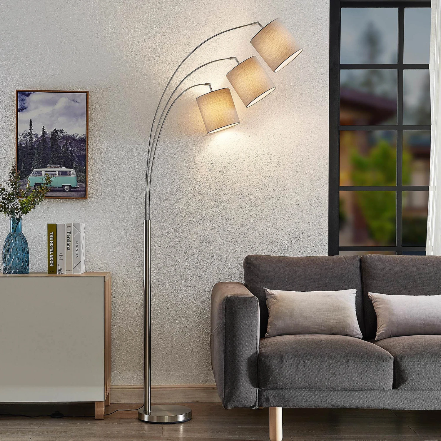 Lampadaire Nanika avec abat-jour textile en taupe élégant