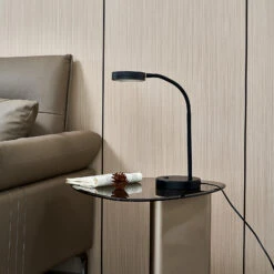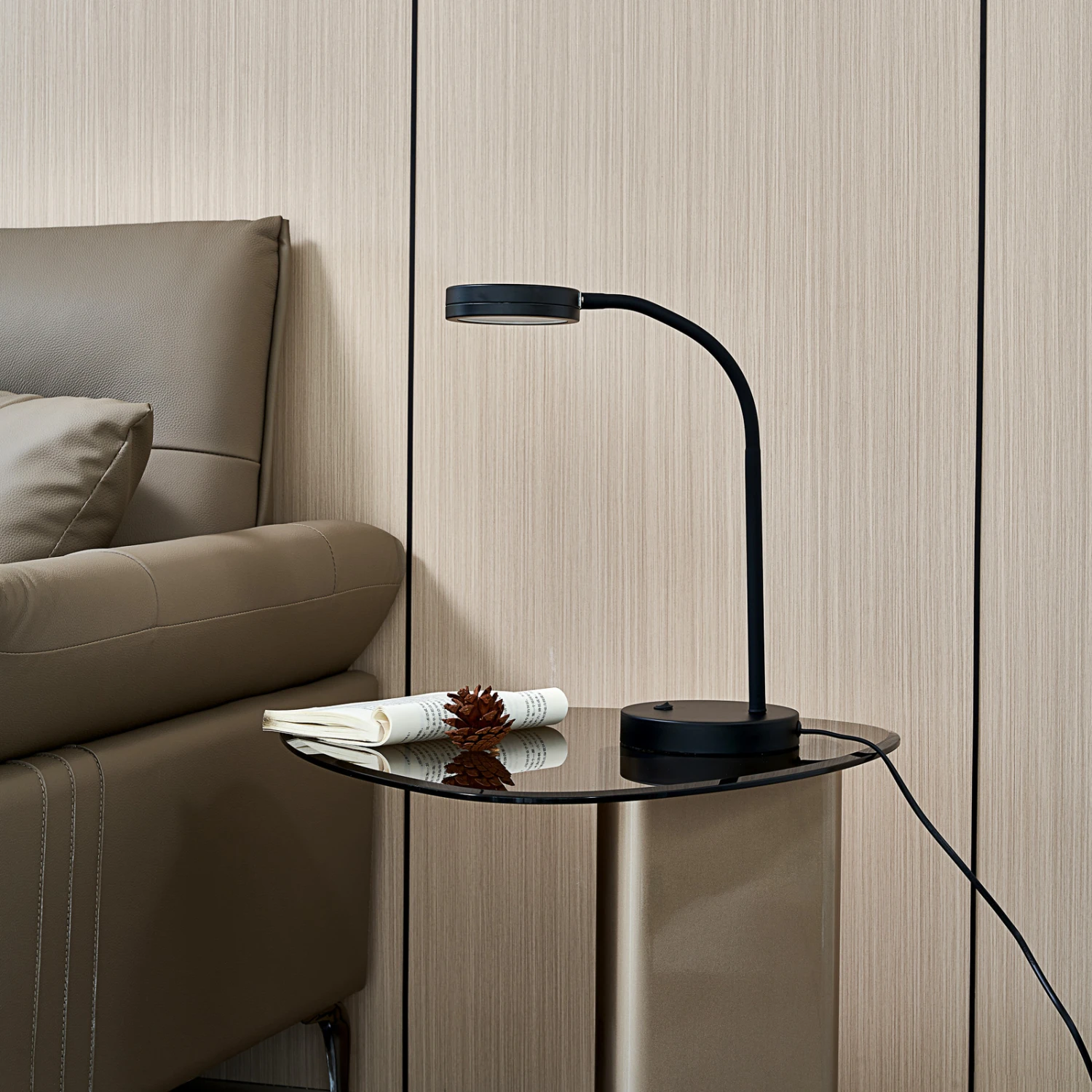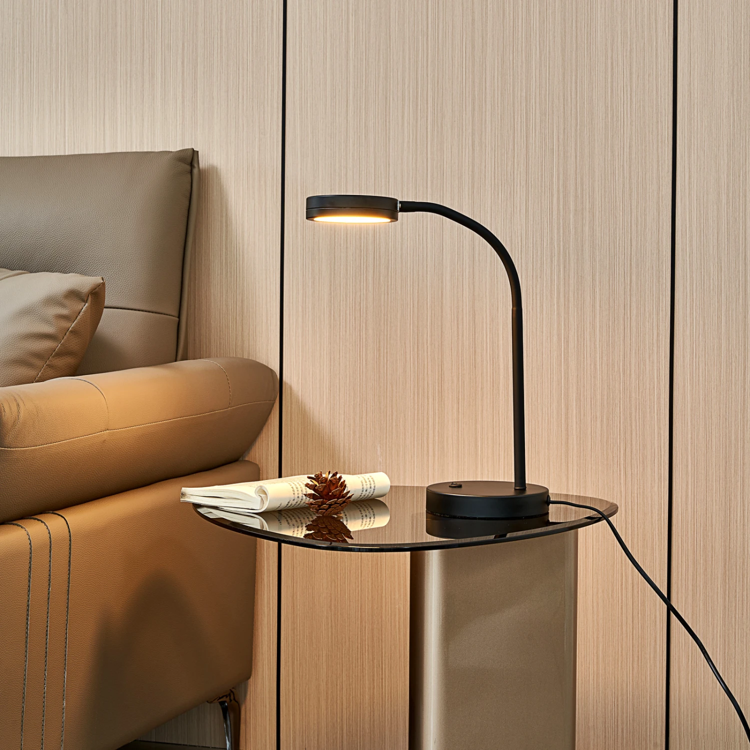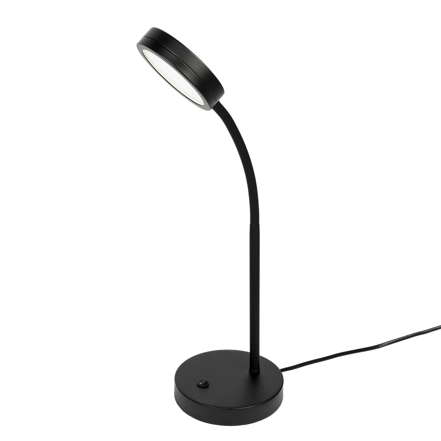 Lampe de bureau LED Toulin avec tête d’éclairage ronde et plate, bras flexible et couleur de lumière réglable