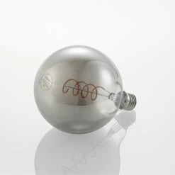 Lampe LED E27 G125 4W avec verre fumé décoratif, dimmable, en lot pratique de 2. L’aspect séduisant du verre fumé rencontre la technique LED efficace. Cette ampoule LED E27 enthousiasme aussi bien par son aspect original que par sa technique à faible consommation d’énergie. L’intensité de la lampe peut être réglée au besoin à l’aide d’un variateur à coupure de phase ou d’un variateur à coupure de phase et convient surtout aux luminaires qui possèdent un abat-jour ouvert ou non. L’ampoule possède un rendu des couleurs particulièrement bon.Caractéristiques techniques- dimmable par variateur à coupure de phase ou à coupure de phase- classe d’efficacité énergétique B- valeur comparative : 5 W- durée de vie : 25.000 h- cycles de commutation : 50.000- facteur de puissance >; 0,5- CRI >; 90particularités- optique filamentaire- caractère décoratif