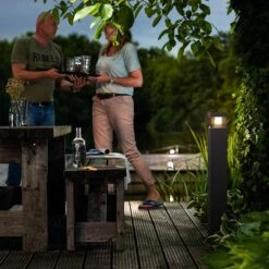 La borne lumineuse LED Parterre de 77 cm de haut n’assure pas seulement un bon éclairage des chemins et des espaces ouverts autour de la maison, elle est également très décorative. En effet, lorsque l’abat-jour cubique s’illumine à la tombée de la nuit, il crée une ambiance lumineuse à couper le souffle et donne l’impression de flotter dans l’air.