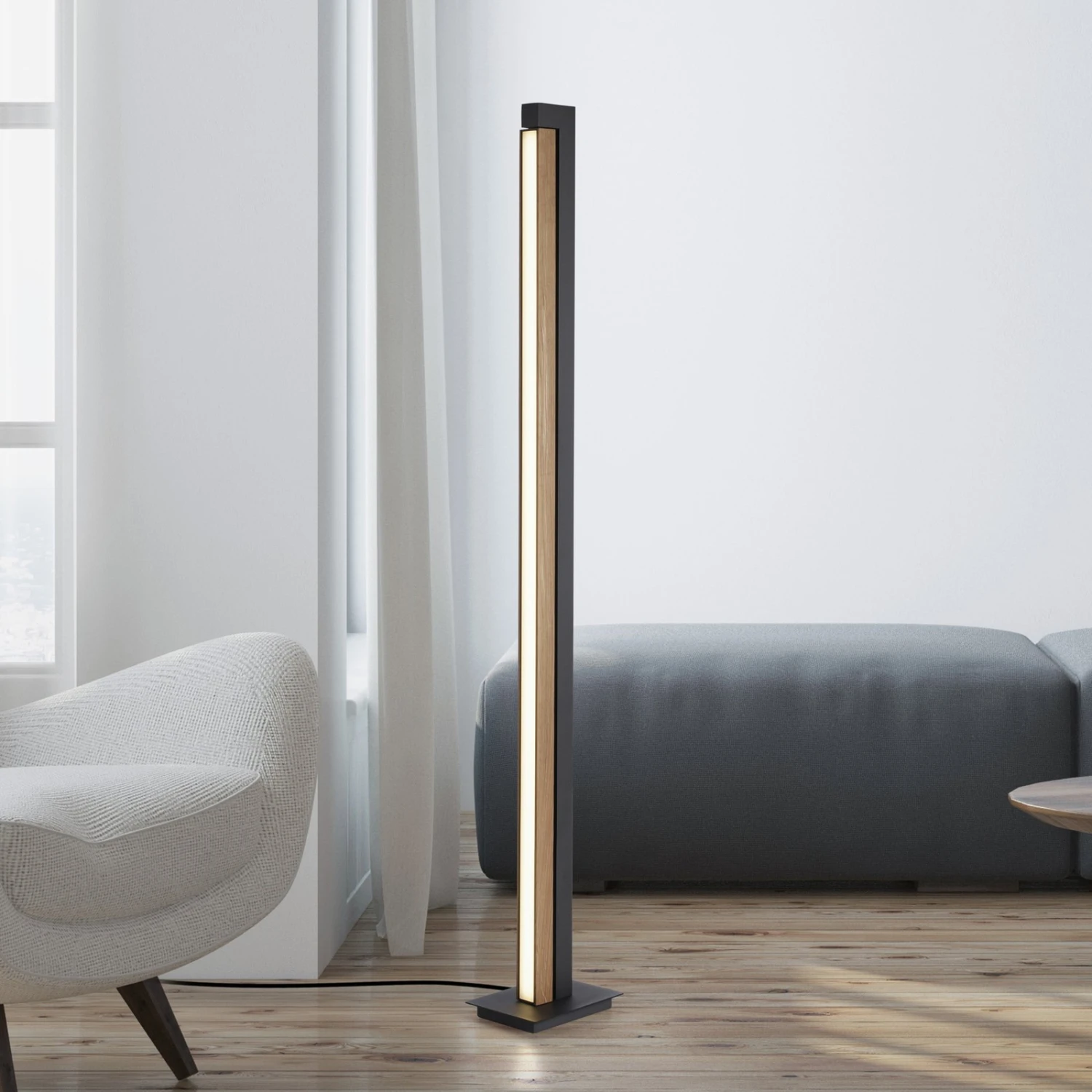 PURE Lines Lampe Sur Pied LED Télécommande, Bois